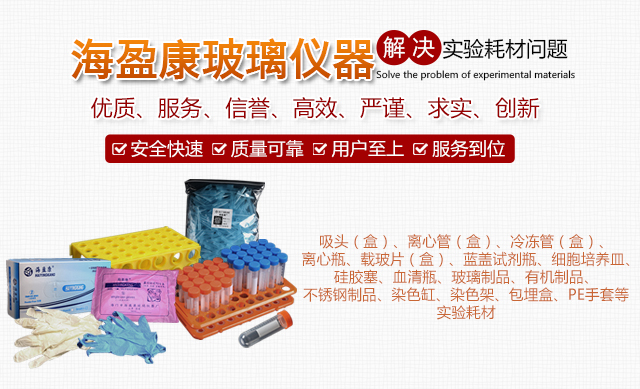 主要经营:吸头(盒)、离心管(盒)冷冻管(盒)、离心瓶、载玻片(盒)、蓝盖试剂瓶、细胞培养皿、硅胶塞、血清瓶、玻璃制品、有机制品、不锈钢制品、染色缸、染色架、包埋盒、PE手套等实验耗材。产品适用于科研单位,医院学府,大专院校等单位。企业本着“优质、服务、信誉”的精神,坚持......